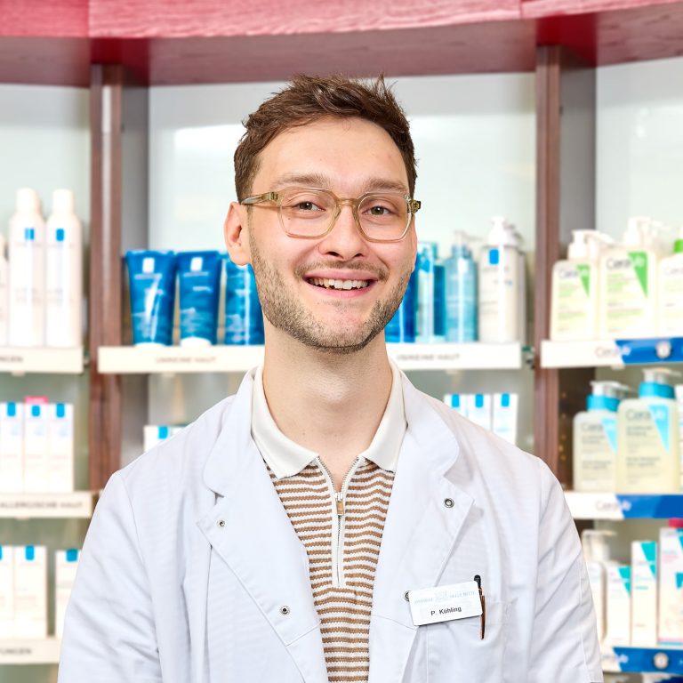 Herr Kühling befindet sich derzeit in der Weiterbildung zur Fachapothekerin für Allgemeinpharmazie. Durch das erfolgreich absolvierte Curriculum zur Medikationsanalyse ist er qualifiziert, komplexe Arzneimitteltherapien strukturiert zu analysieren und Patienten mit Mehrfachmedikation kompetent zu beraten und leistet damit einen wichtigen Beitrag zur Verbesserung der Lebensqualität.